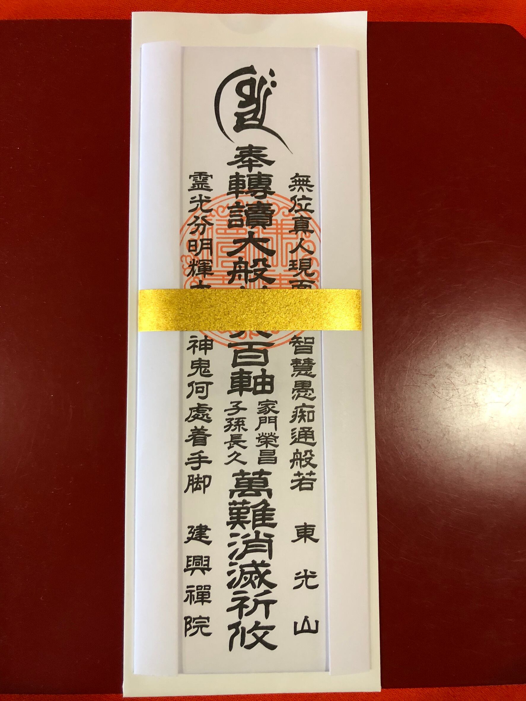 当院に明治33年から伝わる版木から復刻したオリジナルご祈祷札になります。